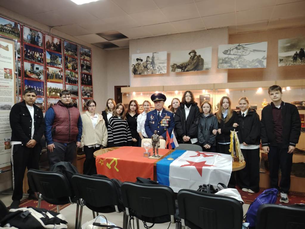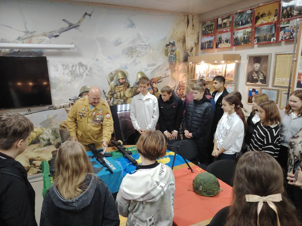 С началом нового учебного года в комнате «Боевой Славы» возобновились встречи ветеранов боевых действий со школьниками и студентами г. Мичуринска и Мичуринского округа. Накануне беседу с учащимися 8 Г класса МБОУ СОШ № 1 провели ветеран боевых действий в Афганистане, летчик, подполковник, кавалер ордена Красной Звезды В.М. Воротников и участник специальной военной операции И.М. Хрулев.